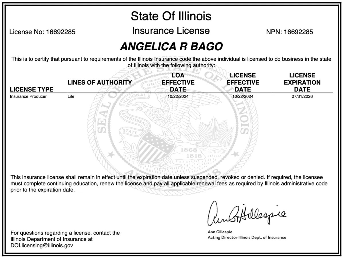 During your conversation, a licensed professional will search top carriers to get you the best coverage for your needs at the best price. Everyone's needs are different, so your coverage should be too. Let Angelica help you find your best options.